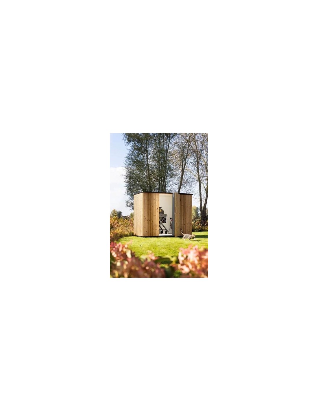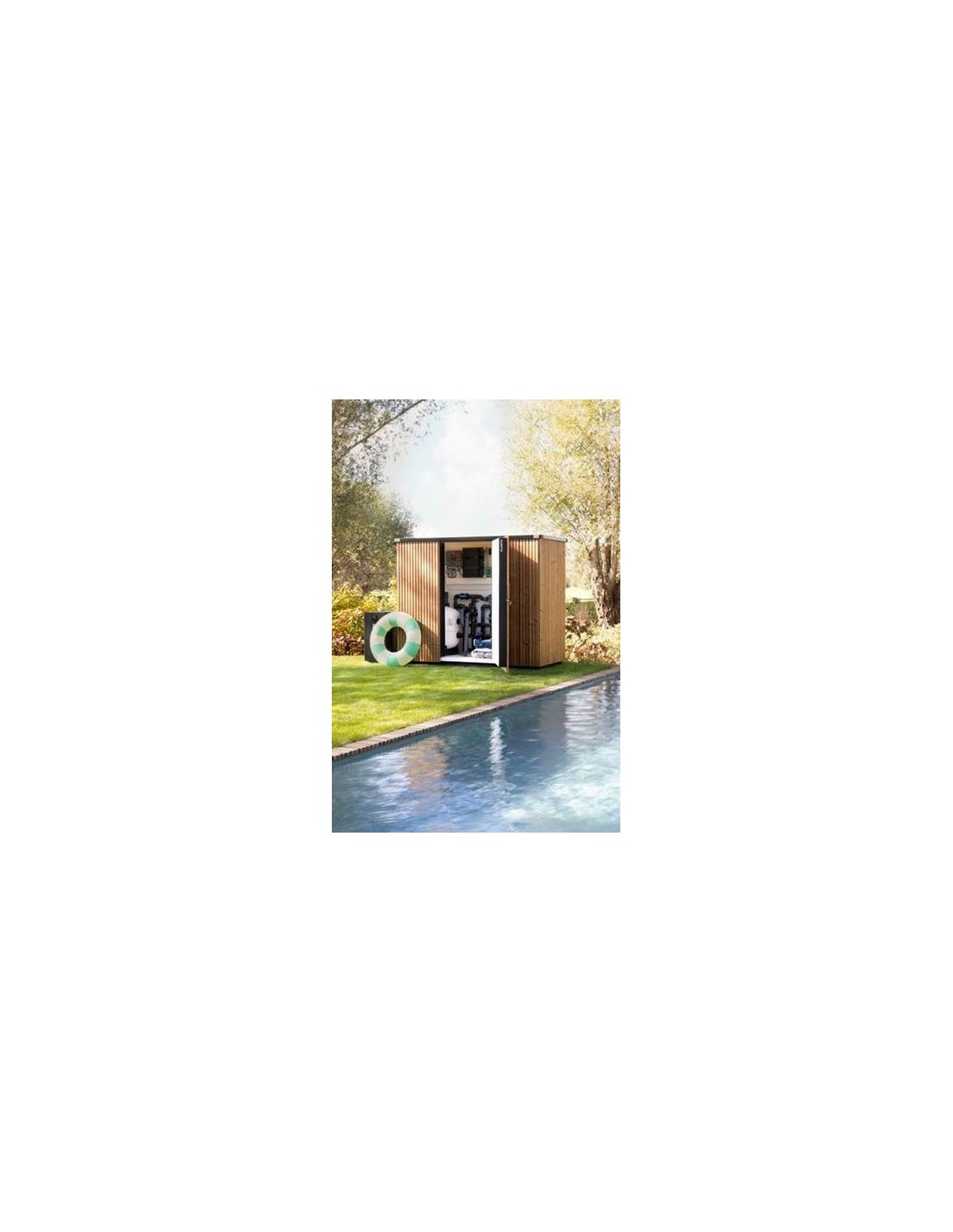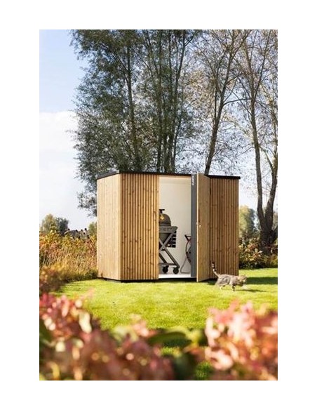 Local technique Thermowood parois intérieures en plastique, étanche au vent et à l'eau. porte de 945mm verouillable à clé. Livré sur palette, prêt à être monté. Montage simple. dimensions intérieures 1960mm X 880mm, hauteur 1600mm dimensions extérieures 2230mm X 1150mm, hauteur 1900mm Poids 280kg